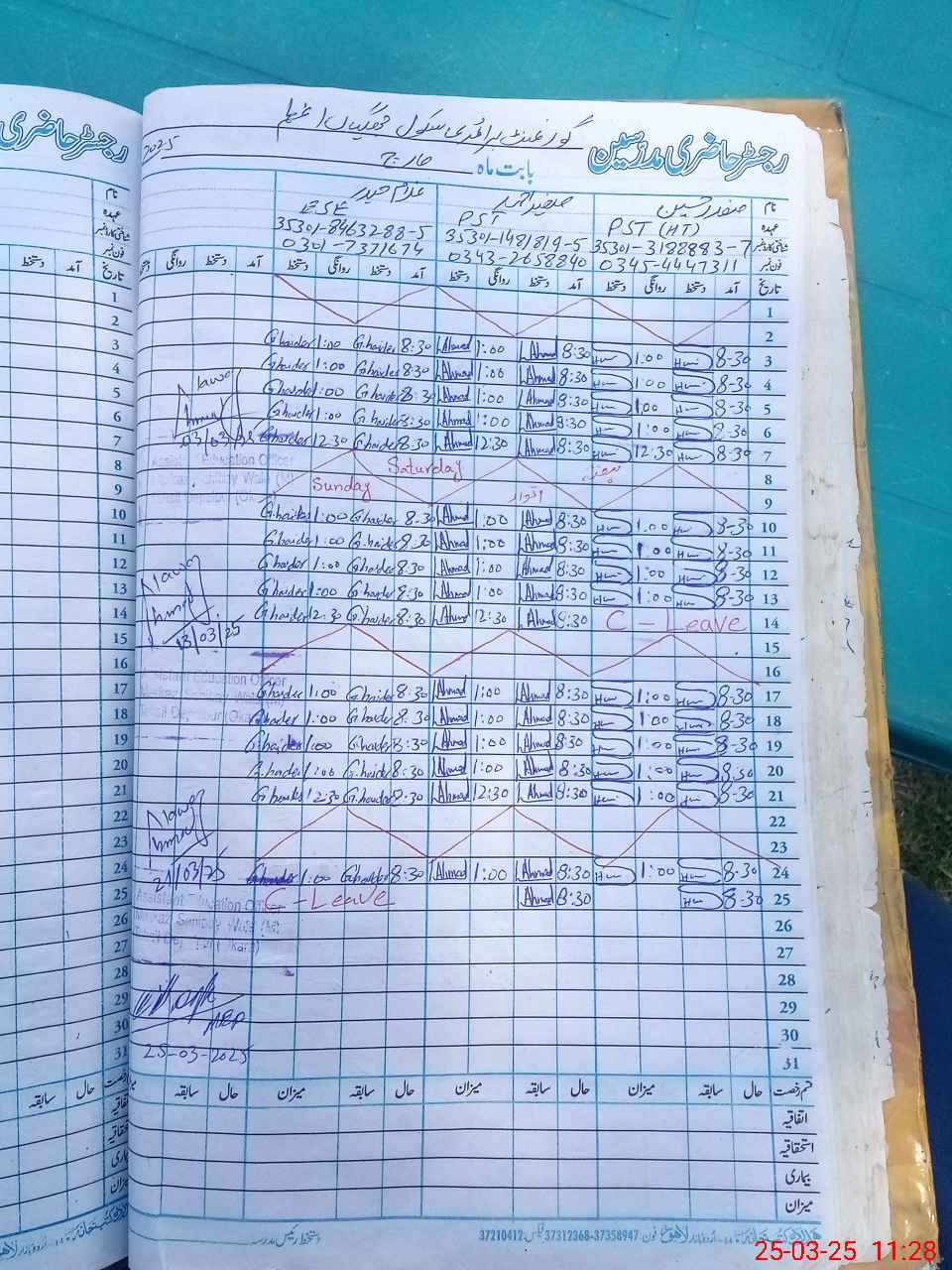 | Name: SA**** HU**** Designation: (School Headmaster's/Headmistress's) PST Phone/Cell Number: 03**** |