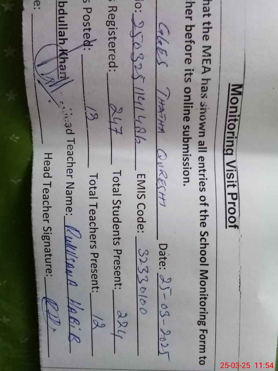| EMIS Code: 32330100 | Name of School: GGES THATHA QURESHI | |||