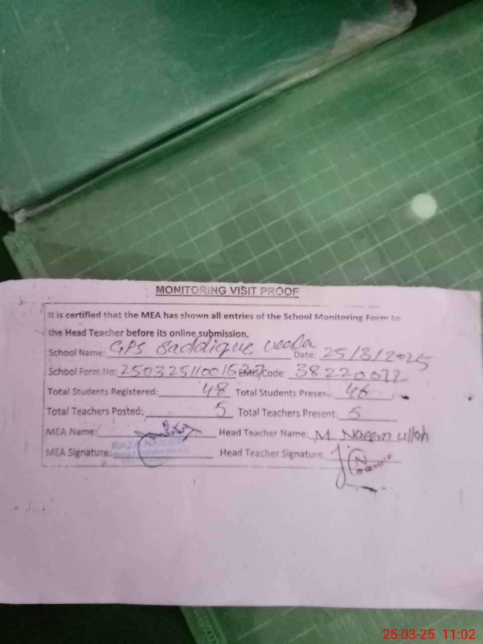 | EMIS Code: 38220072 | Name of School: GPS SIDDIQUE WALA | |||