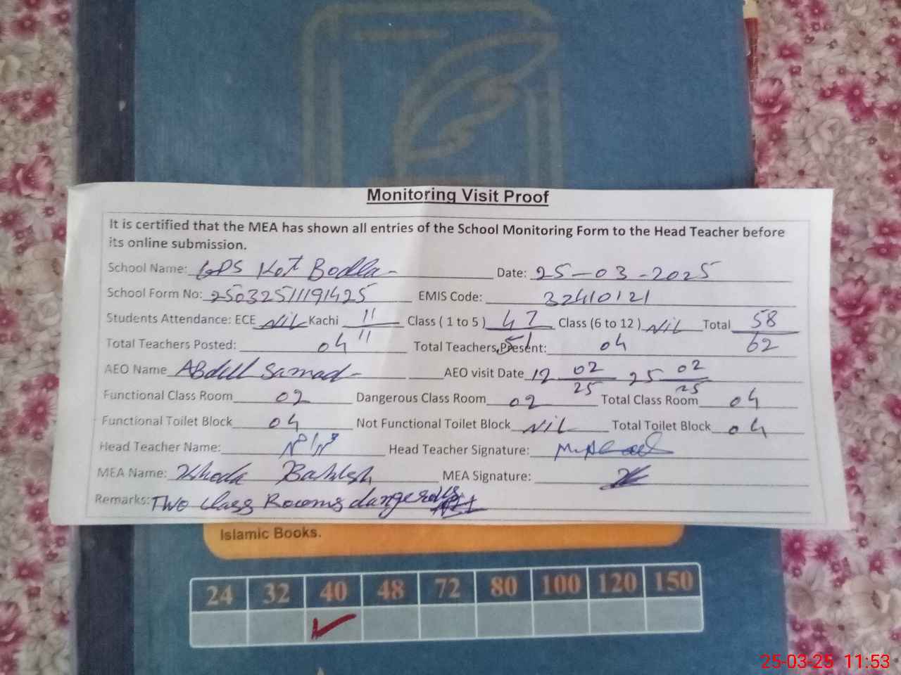 | EMIS Code: 32410121 | Name of School: GPS KOT BODLA | |||