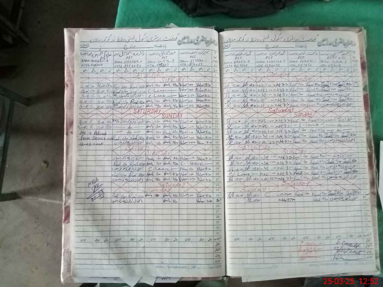 | Leave | Duty | Absent | Maternity | Medical | Ex- Pak |
