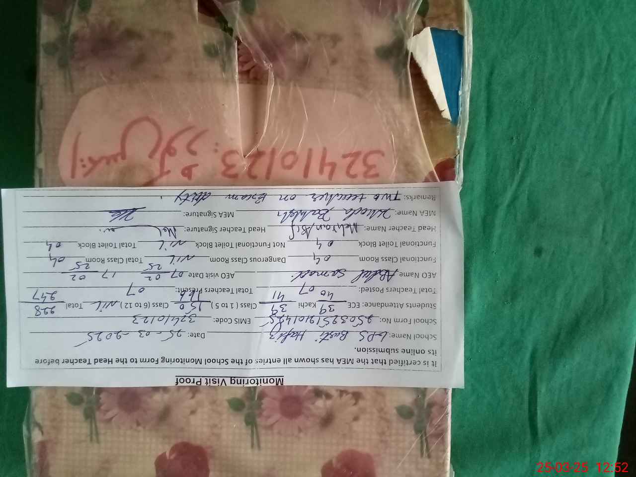 | Certified that this School was Inspected by the Undersigned MEA/DMO Today and the Information Stated Above is as Per Record. | |||||