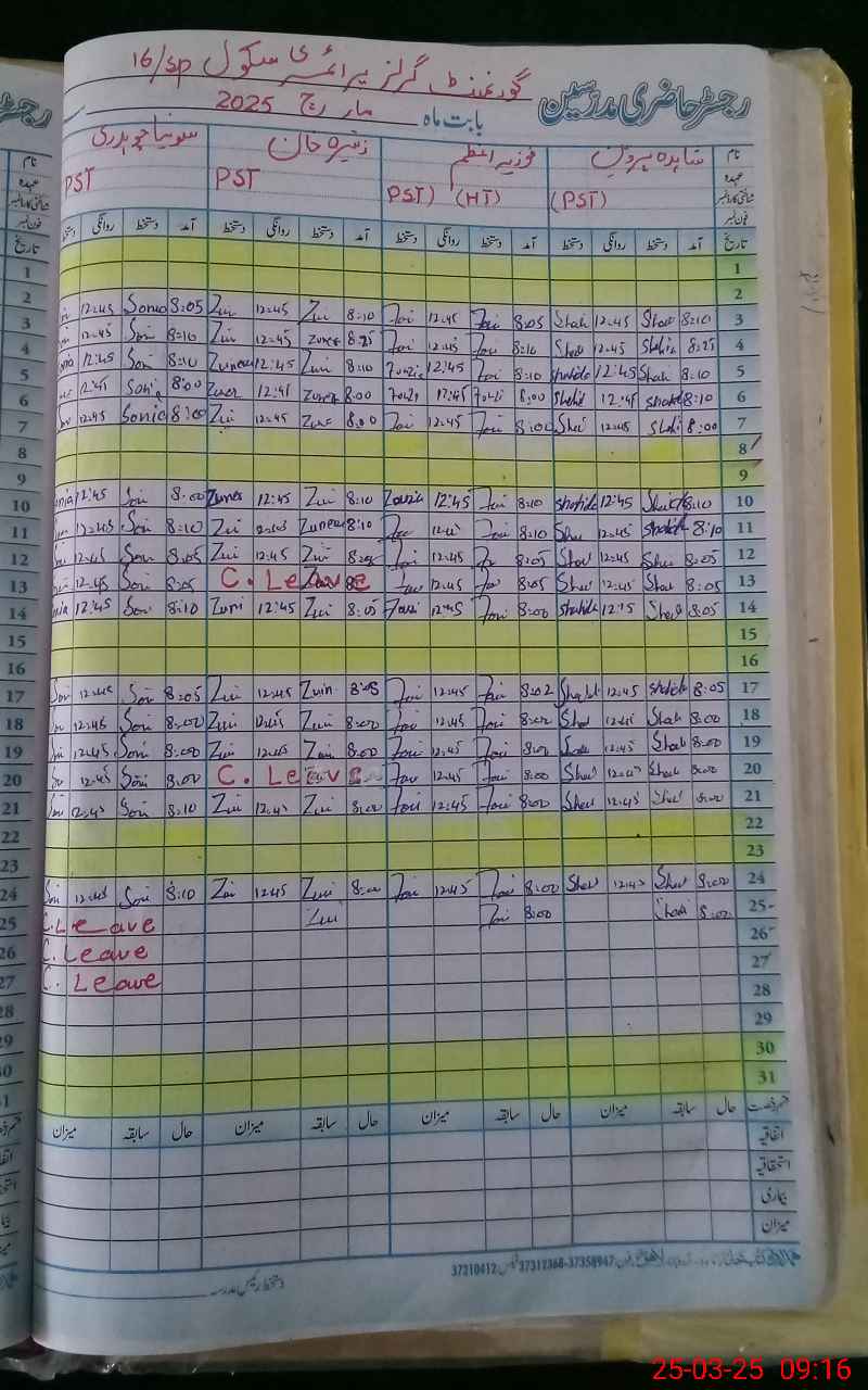 | Name: Zo**** Kh**** Designation: (School Headmaster's/Headmistress's) PST Phone/Cell Number: 03**** |