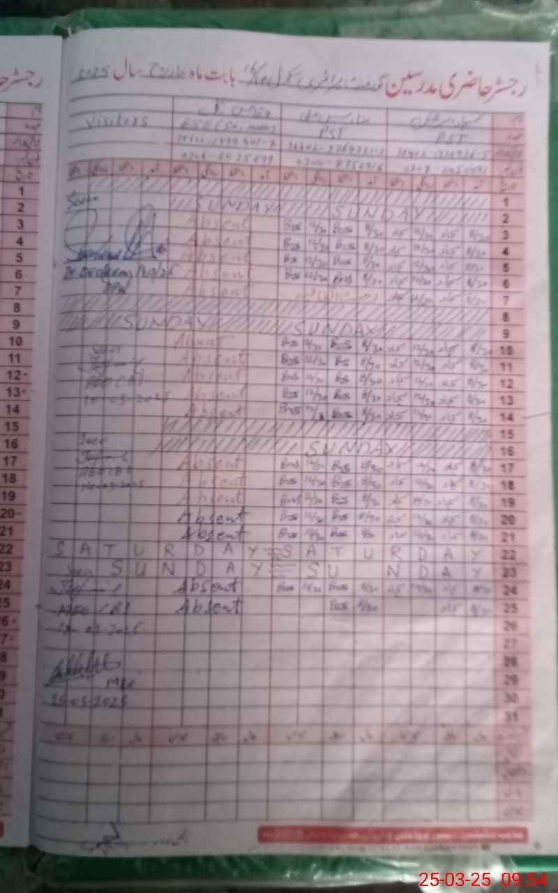 | Name: SA**** URRE**** Designation: (School Headmaster's/Headmistress's) PST Phone/Cell Number: 03**** |