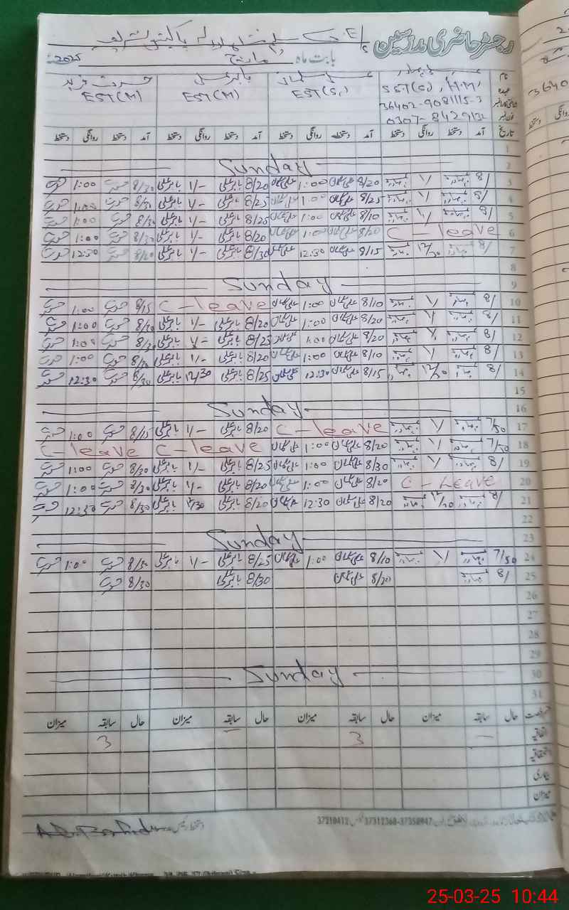 | CNIC | Full Name | Designation | R/C | Absence During Last Calender Month |