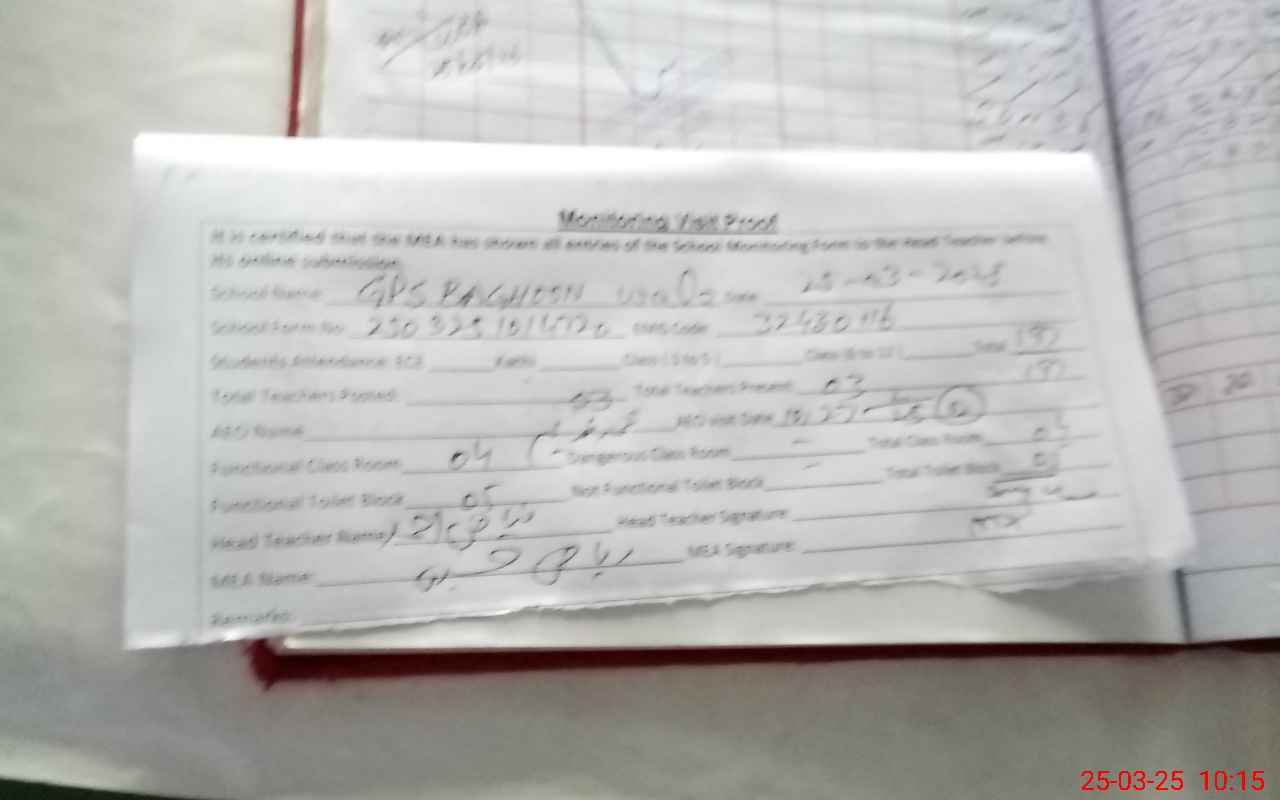| EMIS Code: 32430116 | Name of School: GPS BAGHOON WALA | |||