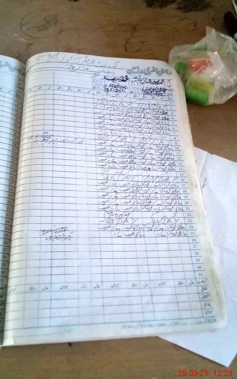 | CNIC | Full Name | Designation | R/C | Absence During Last Calender Month |