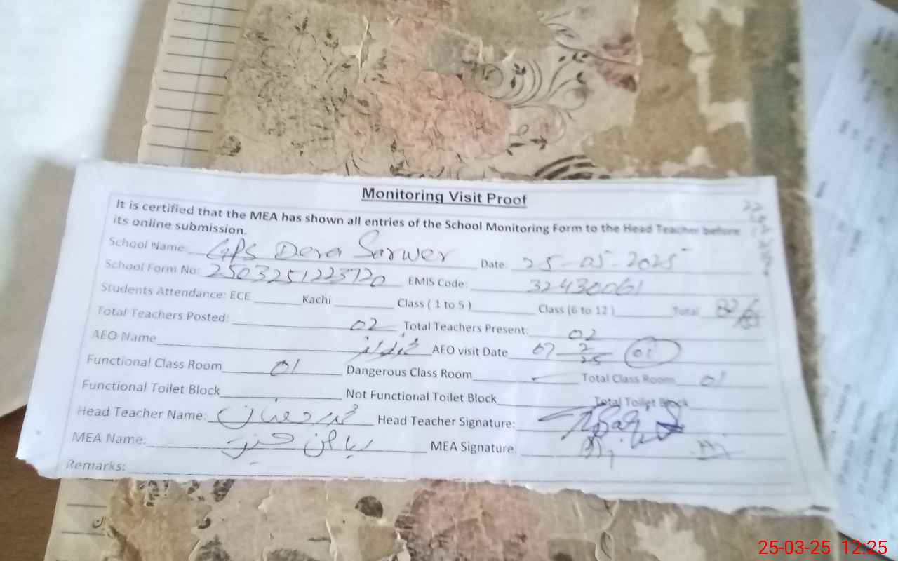 | EMIS Code: 32430061 | Name of School: GPS DERA SARWAR | |||