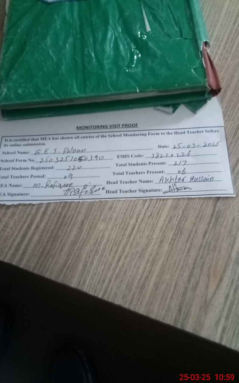 | Attendance Register | Head Teacher | MEA with School | Visit Proof |