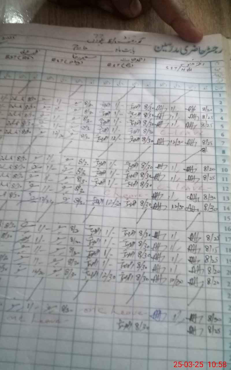 | CNIC | Full Name | Designation | R/C | Absence During Last Calender Month |