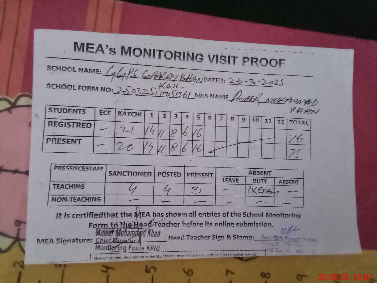 | EMIS Code: 36420382 | Name of School: GGPS GHAREY BHAN,KHANEWAL | |||