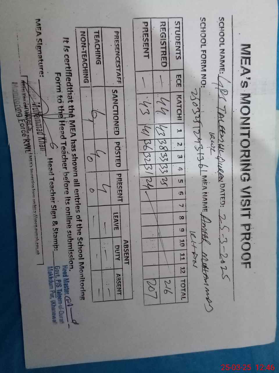 | EMIS Code: 36420149 | Name of School: GPS TALEEM UL QURAN, P/O MAKHDOOM PUR, KHANEWAL | |||