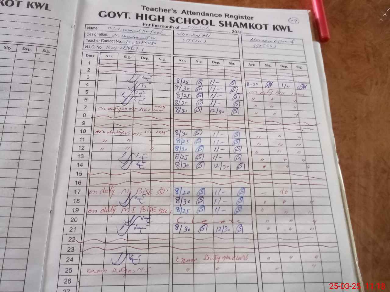 | 36**** | Sh**** Al**** | SST | Regular | 0 | 0 | 0 | 0 | 0 | 0 | 0 | 0 | 0 | Exam Duty |