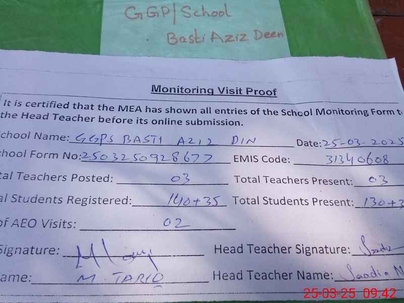 | EMIS Code: 31340608 | Name of School: GGPS BASTI AZIZ DEEN | |||