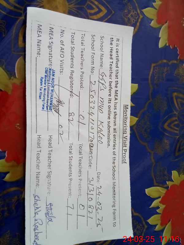 | EMIS Code: 31310821 | Name of School: GGPS MUD KALOO | |||