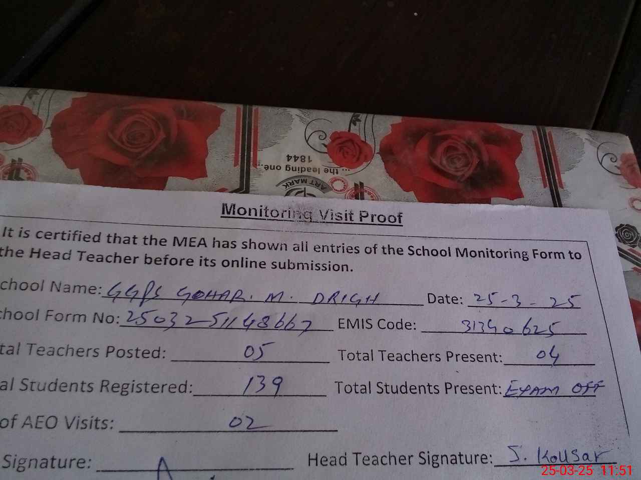 | EMIS Code: 31340625 | Name of School: GGPS GOHAR MUHAMMAD DRGH | |||