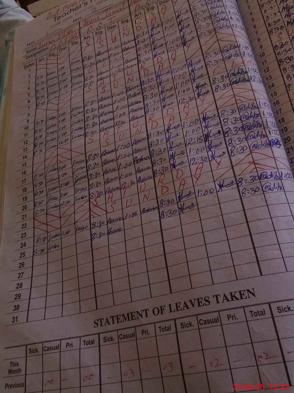 | Name: Im**** Kh**** Designation: (School Headmaster's/Headmistress's) PST Phone/Cell Number: 03**** |