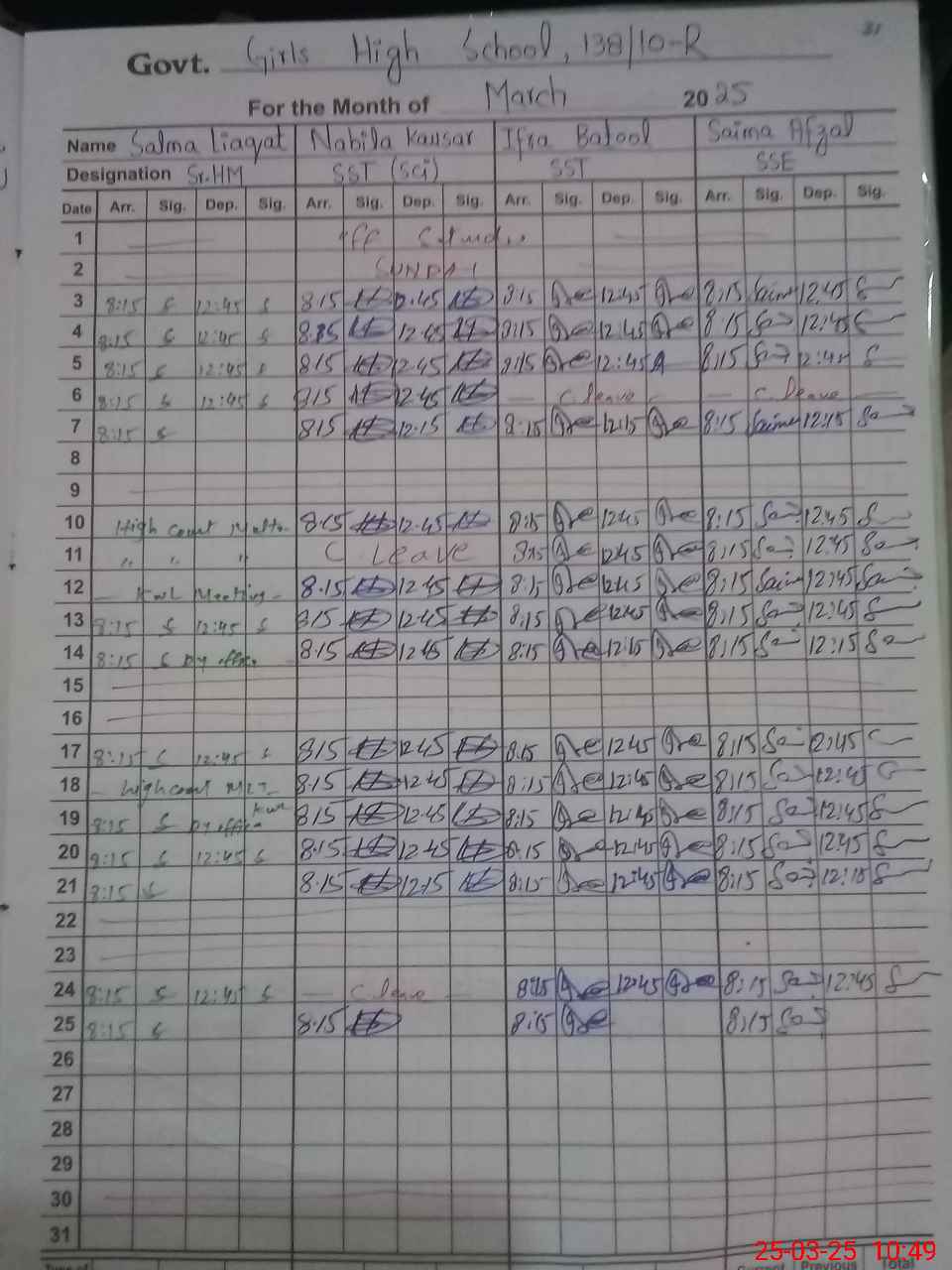 | 36**** | Uz**** No**** | 3 | 1 | 0 | 0 | 0 | 0 | 0 | 0 | 0 | 0 | 0 | Exam Duty |