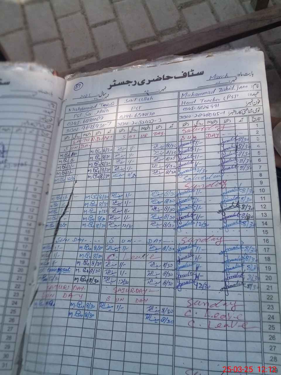 | Name: Mo**** Za**** Designation: (School Headmaster's/Headmistress's) PST Phone/Cell Number: 03**** |
