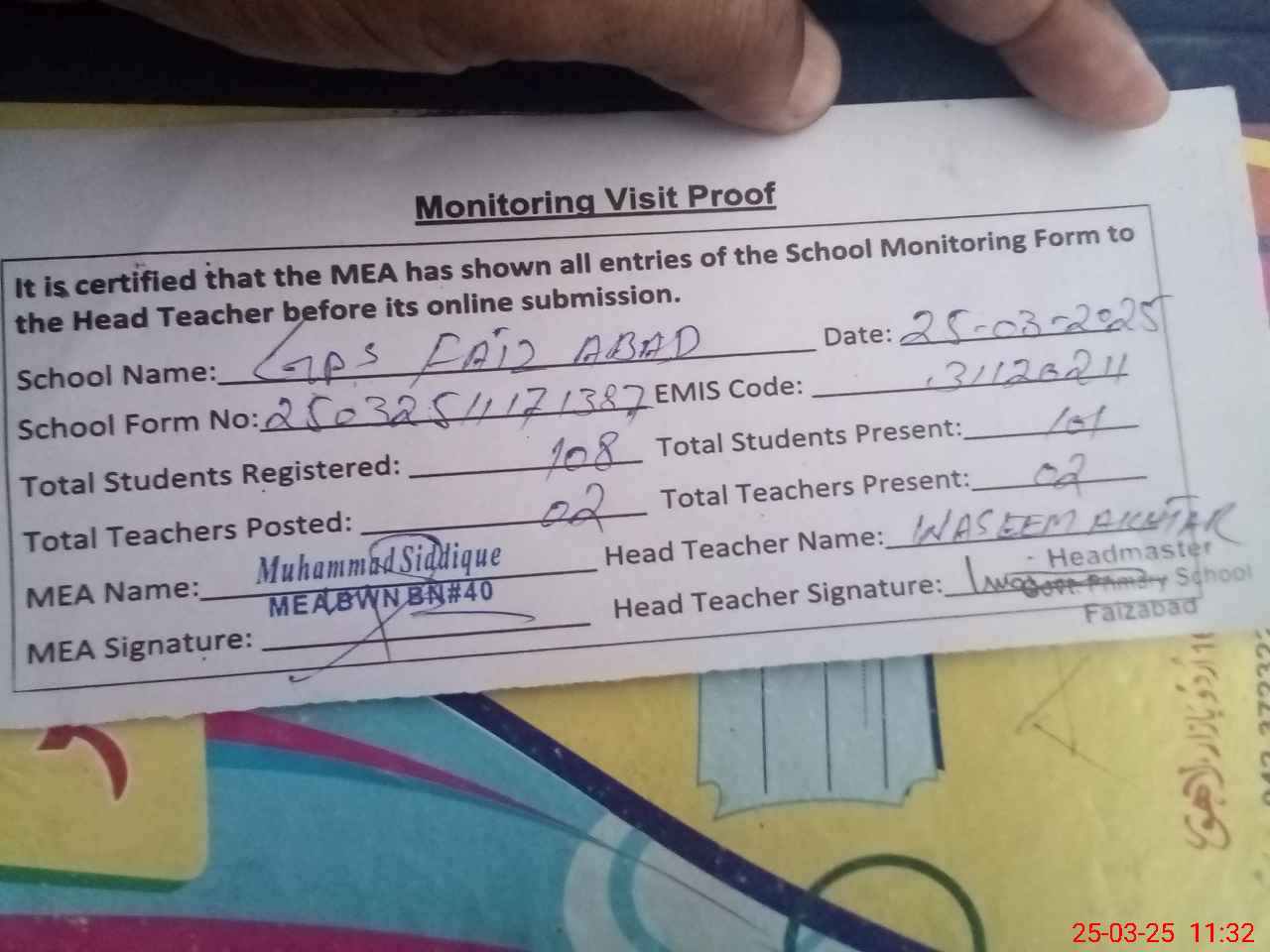 | EMIS Code: 31120211 | Name of School: GPS FAIZ ABAD | |||