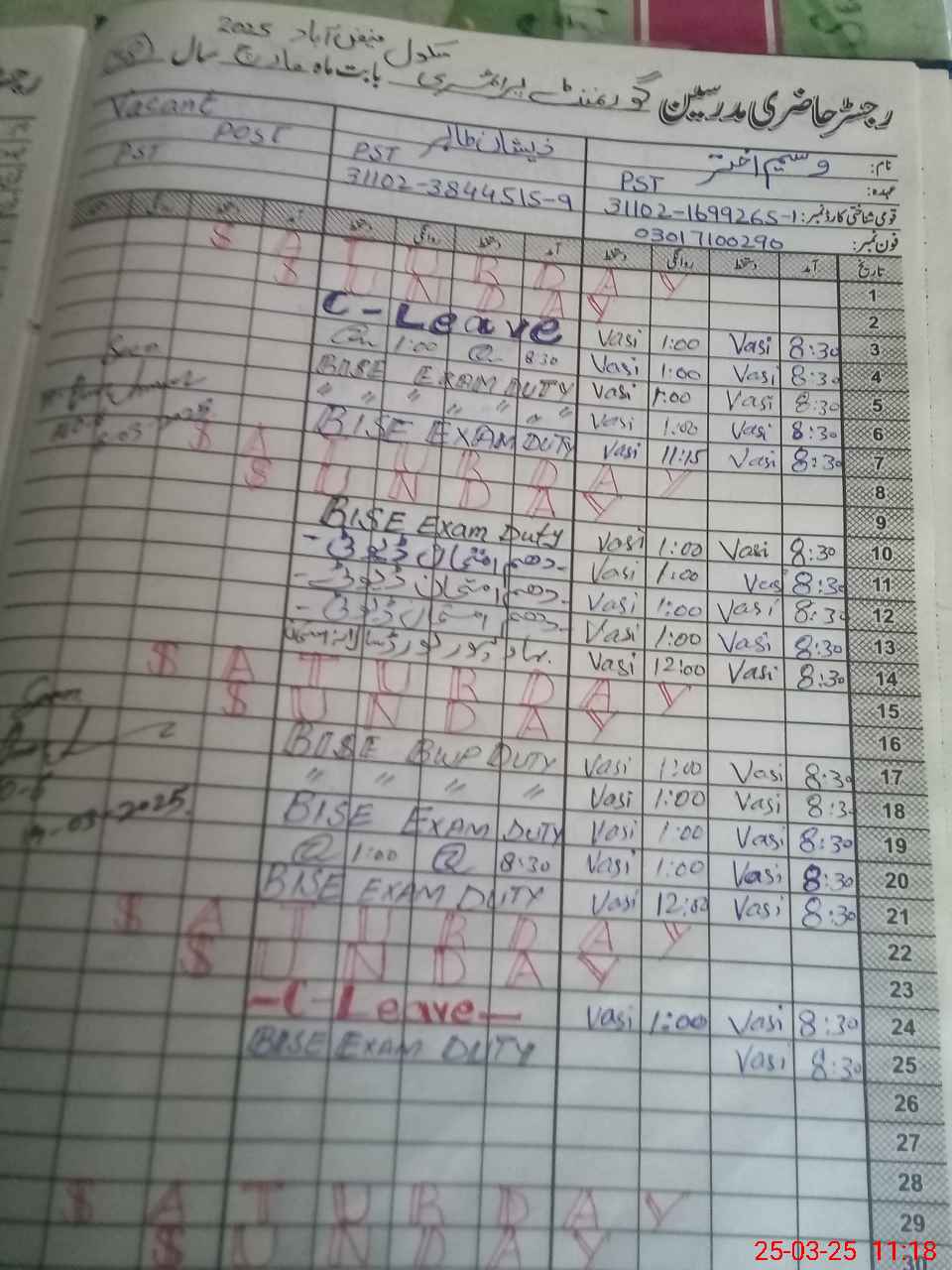 | 31**** | Ze**** Ta**** | ESE | Contract | 0 | 0 | 0 | 0 | 0 | 0 | 0 | 0 | 0 | Exam Duty |