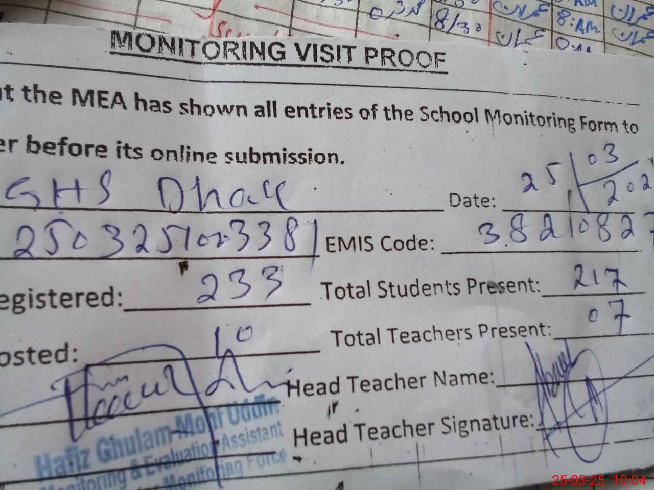 | EMIS Code: 38210827 | Name of School: GHS DHAK | |||