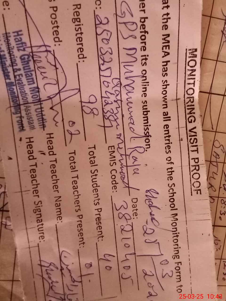 | EMIS Code: 38210405 | Name of School: GPS RAJA MUHAMMAD QASIM MEHBOOB SHAHEED | |||