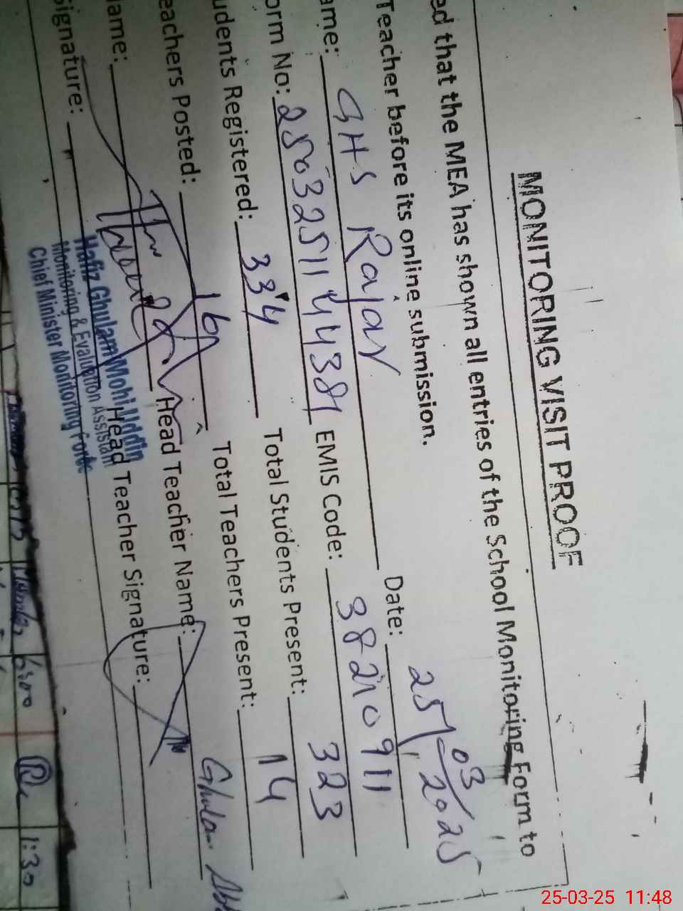 | EMIS Code: 38210911 | Name of School: GHS RAJAR | |||