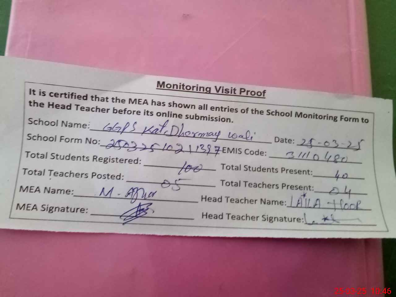 | EMIS Code: 31110480 | Name of School: GGPS KOT DHERMAY WALI | |||