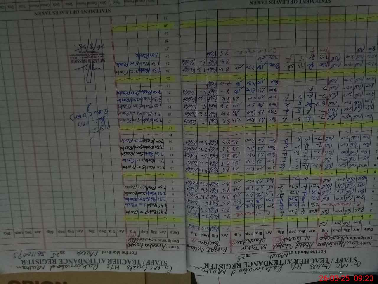 | Name: Ay**** Pa**** Designation: (School Headmaster's/Headmistress's) Headmistaress Phone/Cell Number: 03**** |