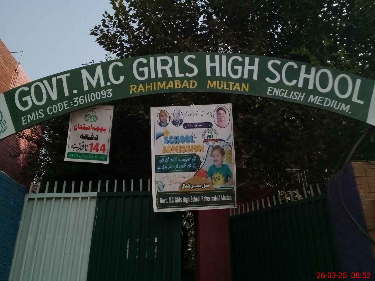 | EMIS Code: 36110093 | Name of School: GGHS MC RAHIM ABAD MULTAN | |||