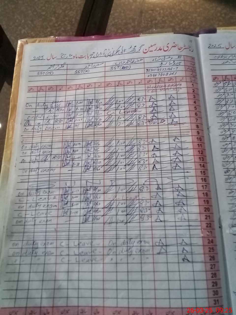 | 35**** | Ha**** Ah**** Kh**** | SST | Regular | 0 | 0 | 0 | 0 | 0 | 0 | 0 | 0 | 0 | Exam Duty |