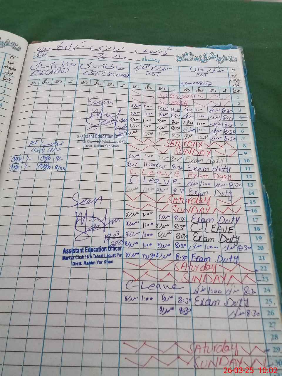 | Name: Ma**** Kh**** Designation: (School Headmaster's/Headmistress's) PST Phone/Cell Number: 03**** |