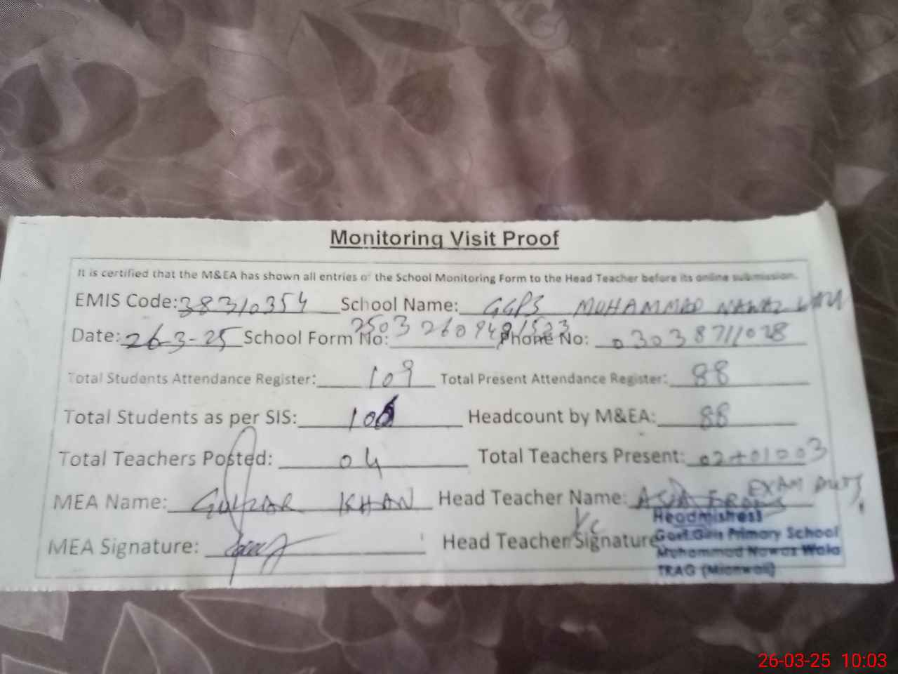 | EMIS Code: 38310354 | Name of School: GGPS MUHAMMAD NAWAZ WALA | |||