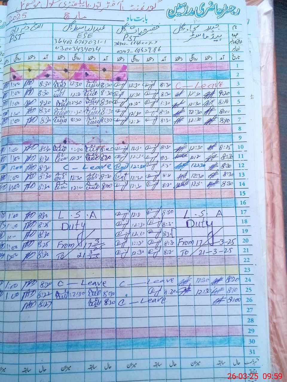 | Leave | Duty | Absent | Maternity | Medical | Ex- Pak |