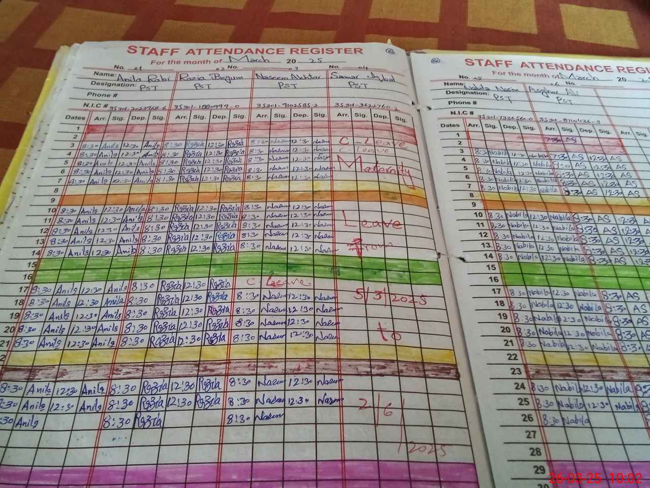 | 35**** | Sa**** Iq**** | PST | Regular | 2 | 26 | 0 | 0 | 0 | 0 | 0 | 0 | 2 | Maternity |