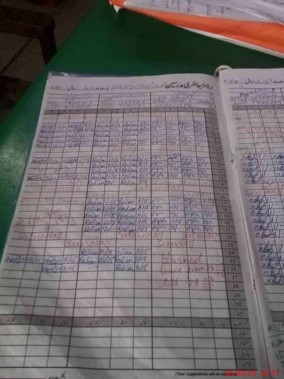 | Leave | Duty | Absent | Maternity | Medical | Ex- Pak |