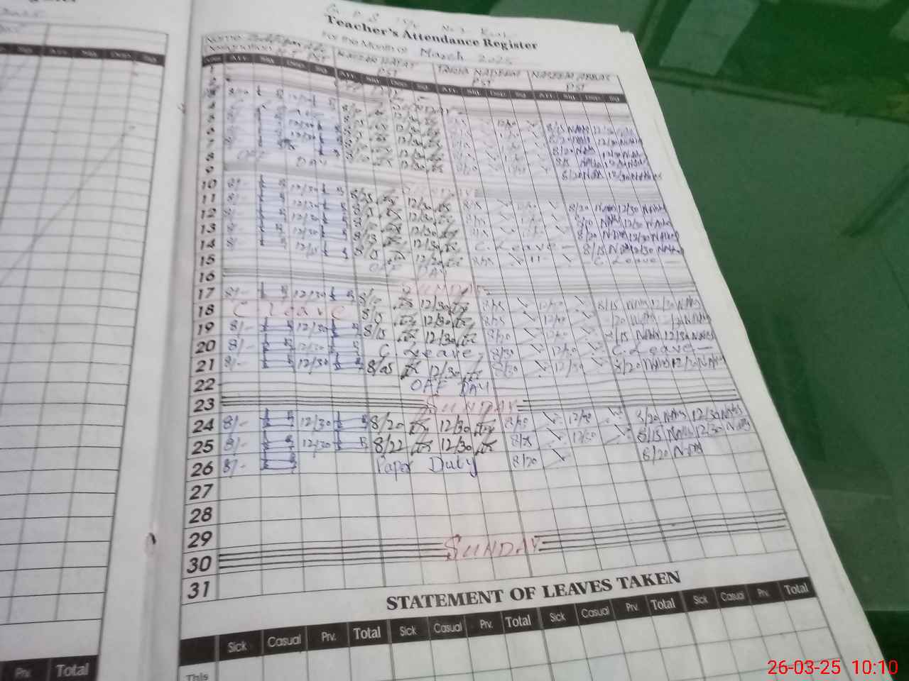 | No. of Students Present - Female | 0 | 0 | 0 | 0 | 0 | 0 | 0 | 0 | 0 | 0 | 0 | 0 | ||||
