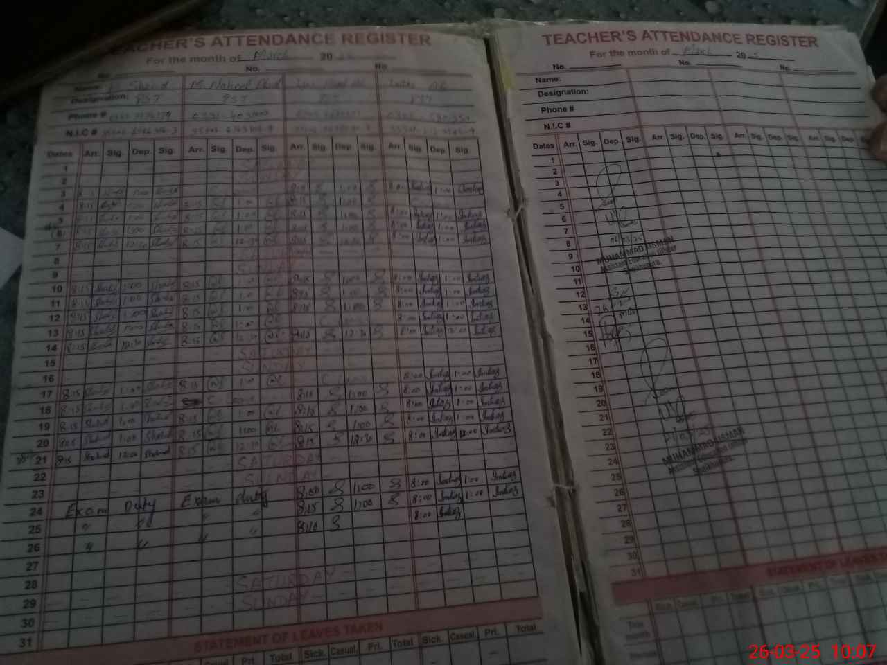 | 35**** | Mu**** Sh**** Sa**** | PST | Regular | 1 | 0 | 0 | 0 | 0 | 0 | 0 | 0 | 1 | Exam Duty |