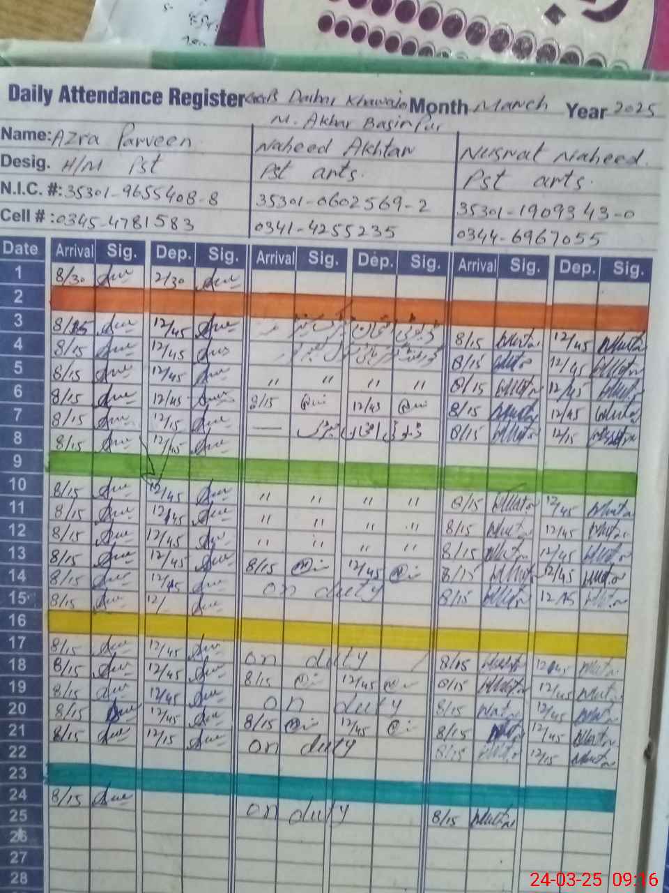 | 35**** | Na**** Ak**** | PST | Regular | 0 | 0 | 0 | 0 | 0 | 0 | 0 | 0 | 0 | Exam Duty |