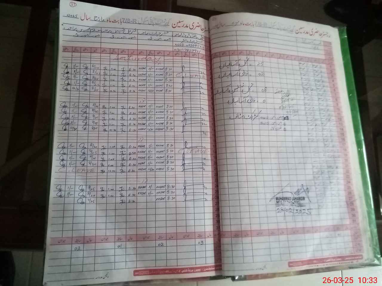 | Remarks (Use Separate Page if Required): 9th and 10 the classes are appearing in exam physically not present Nursary class to 8 th class attendance as per attendance register | |||||