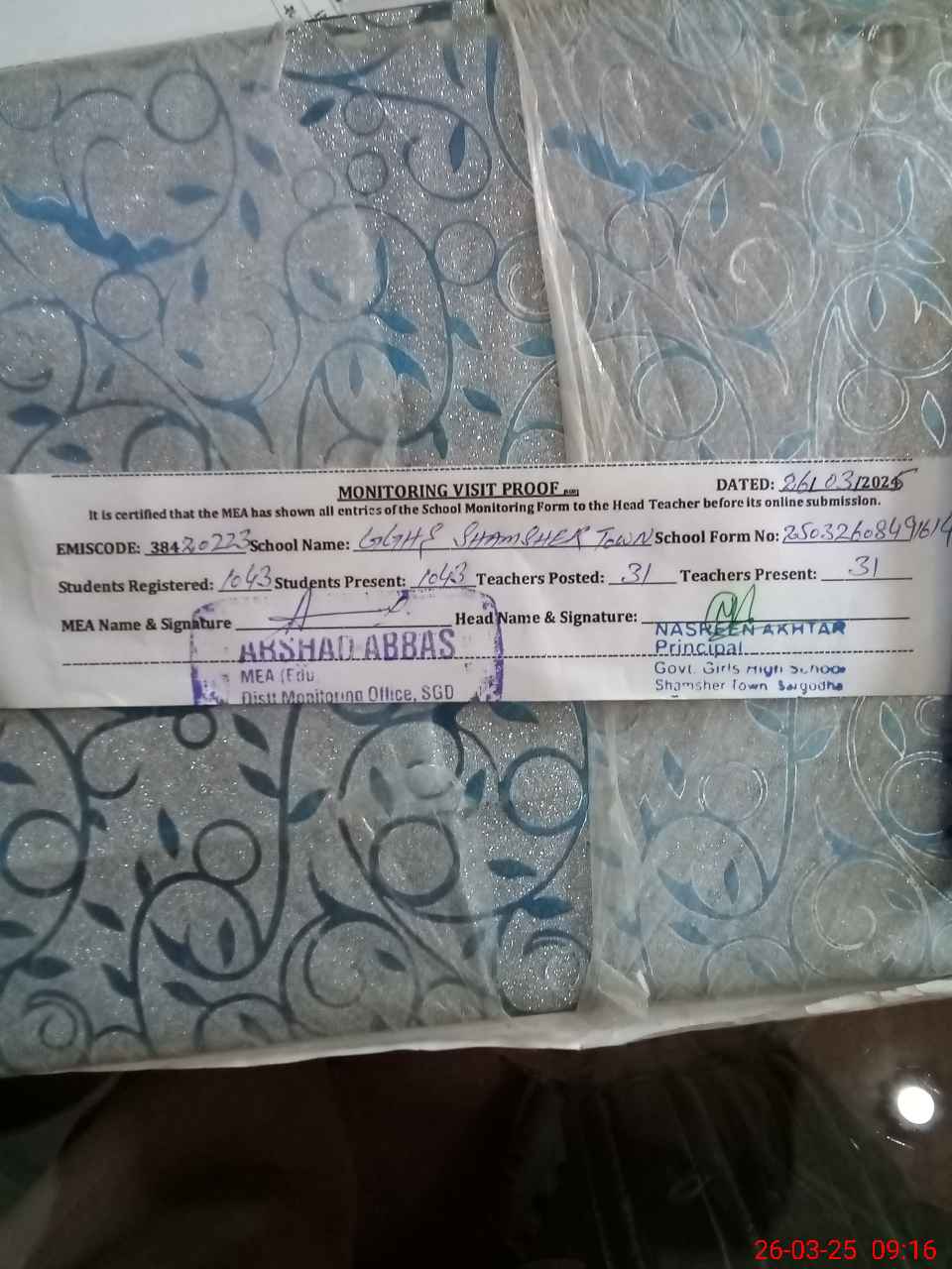 | EMIS Code: 38420223 | Name of School: GGHS SHAMSHER TOWN | |||