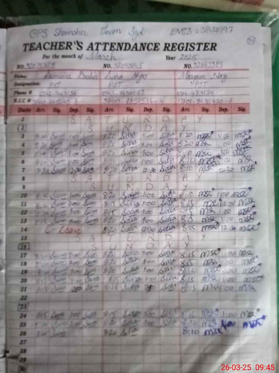 | EMIS Code: 38420797 | Name of School: GPS SHAMSHER TOWN | |||