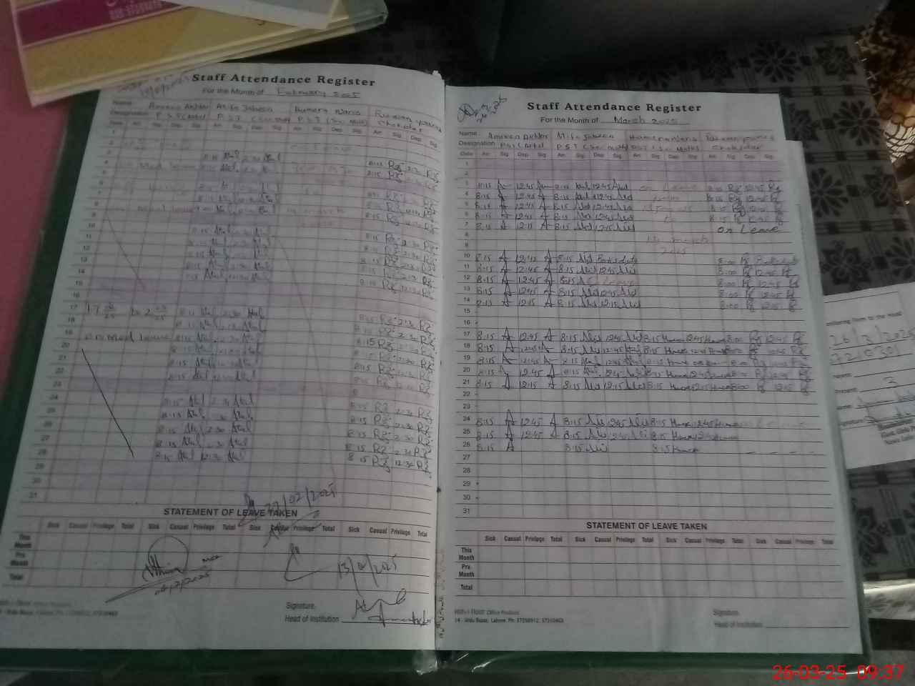 | Remarks (Use Separate Page if Required): Amreen Akhter cnic no 373010249995 2 p st H M Atifa jabeen 373013822060 p s t Humera waris 365017323950 p s t Name with out teacher list | |||||