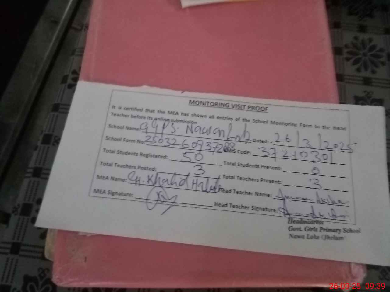 | Certified that this School was Inspected by the Undersigned MEA/DMO Today and the Information Stated Above is as Per Record. | |||||