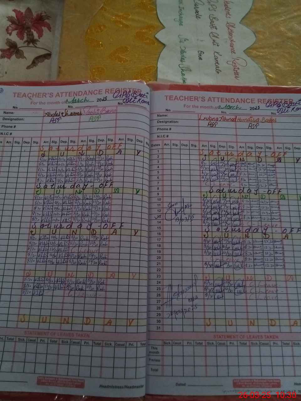 | Name: AB**** SH**** Designation: (School Headmaster's/Headmistress's) PST Phone/Cell Number: 03**** |