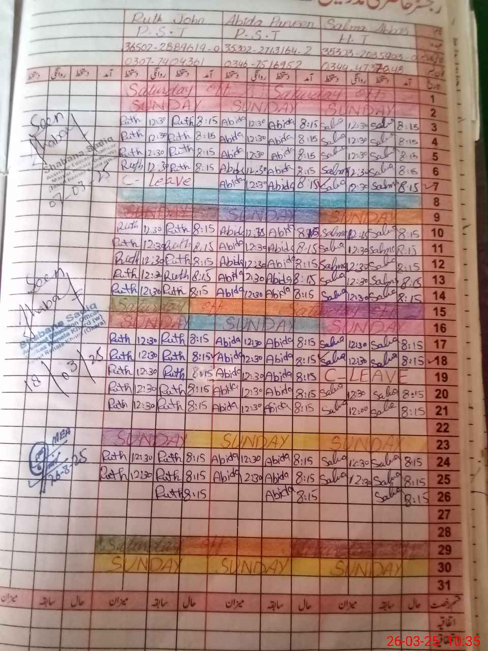 | Leave | Duty | Absent | Maternity | Medical | Ex- Pak |
