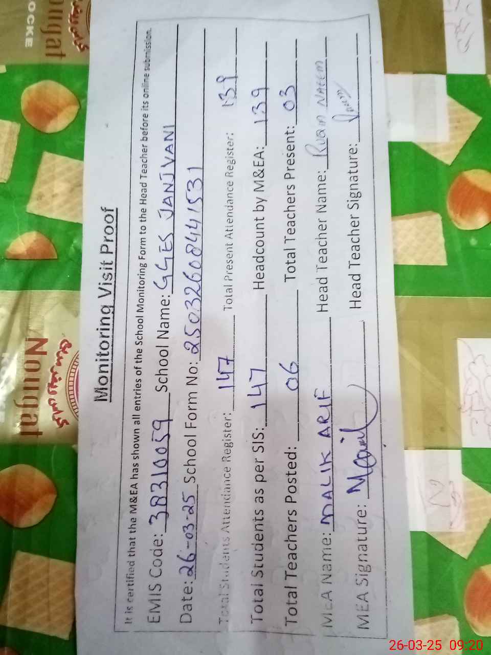 | EMIS Code: 38310059 | Name of School: GGES JANJVANI GHARBI | |||