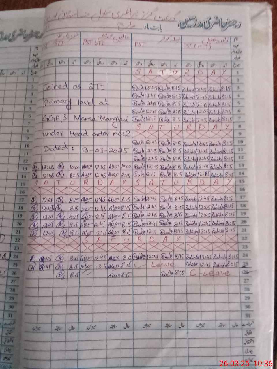 | Leave | Duty | Absent | Maternity | Medical | Ex- Pak |