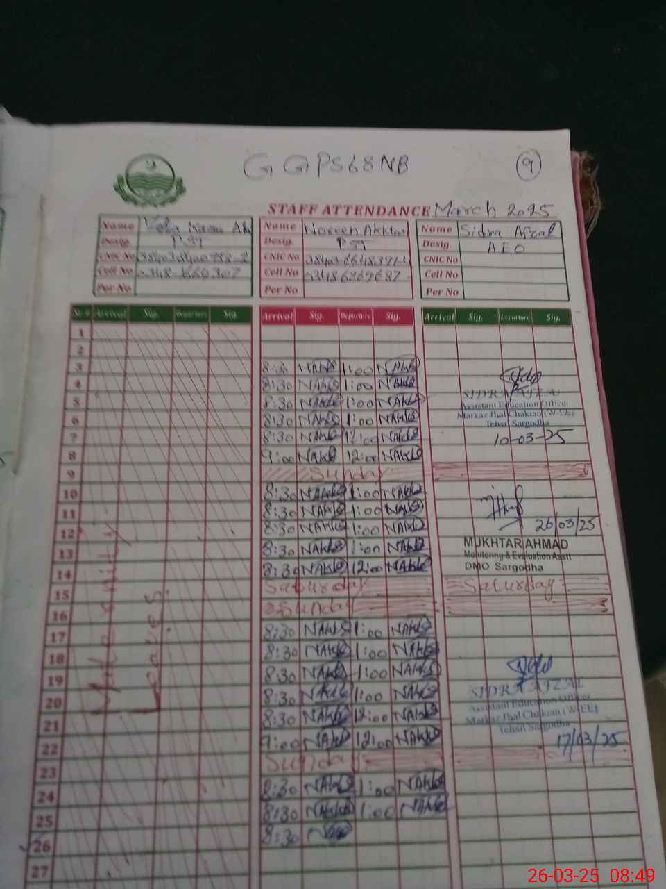 | Name: Za**** Ka**** Al**** Designation: (School Headmaster's/Headmistress's) PST Phone/Cell Number: 03**** |